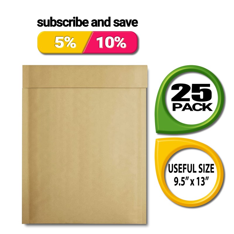 - KRAFT BUBBLE MAILERS 9.5 x 13: Pack of 25 Kraft Bubble Mailers. Natural Brown Color. UPS, USPS, FEDEX, DHL approved. Recyclable packing mailers. Made with lightweight materials to minimize shipping costs and tamper-evident bubble cushioning provides extra protection during transit.