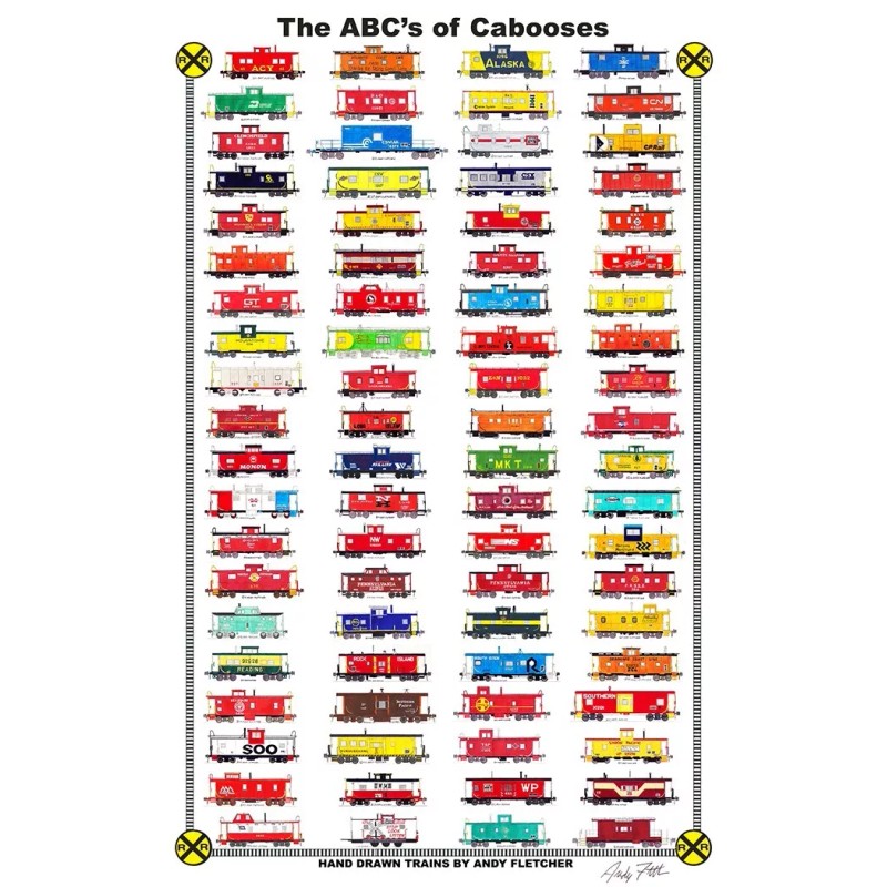 ABC's of Cabooses 11"x17" Railroad Poster by Andy Fletcher signed