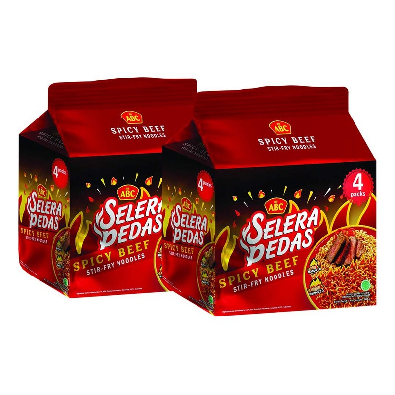 ABC Spicy Beef Stirfry Noodles, NO MSG, Hot Spicy Beef Flavor, Instant Noodles Ramen Quick Meals, Indonesian mi ABC noodles (Pack of 8)