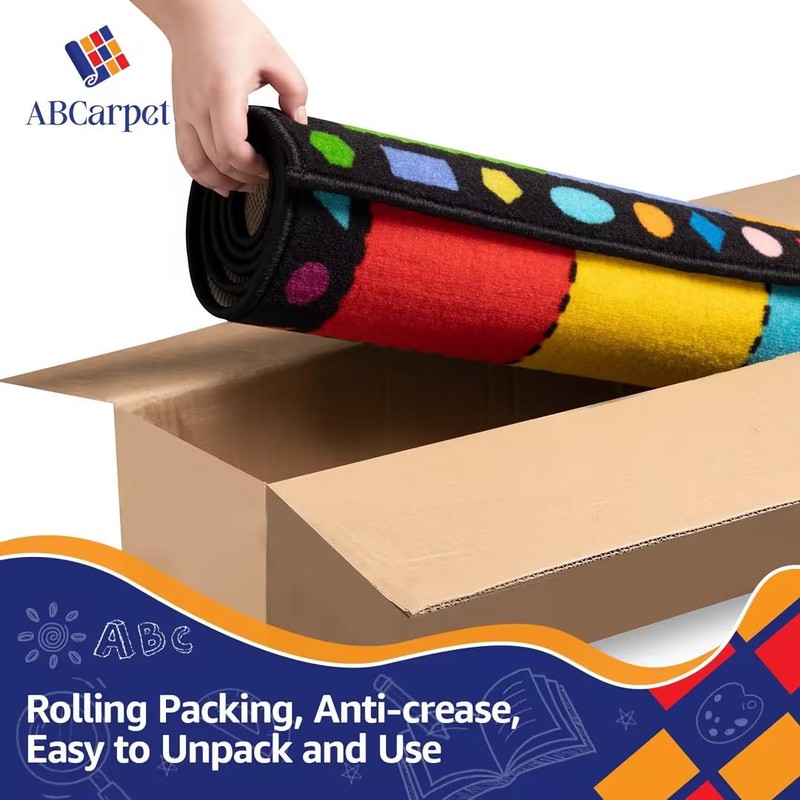 • No Creases, Ready to Use Roll Packaging --- Our nursery classroom rug is thoughtfully packaged in a roll, making it easy to open and use.