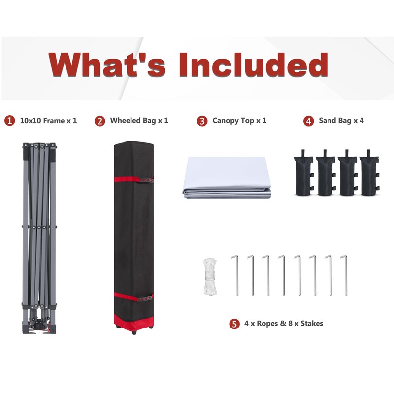 - ❤【Includes All Accessories and Tools】This pop up canopy comes with all the hardware, and this package also includes 4 black sandbags, 8 stakes, and 4 ropes. You do not have to buy any additional accessories to enjoy our outdoor canopy.