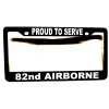ABCCO Military License Plate Frame, PROUD TO SERVE/82nd. Airborne-Black ABS-#842147S