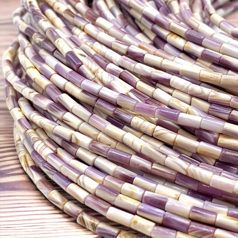 ABCGEMS North American Snowy-White Wampum Shell Beads with Lavender Tone - Found in MA, RI, NY (America's First Currency Year 1637-1673) Native American Style DIY Wampum Belt Pow Wow Tube 3X5mm (Tiny)