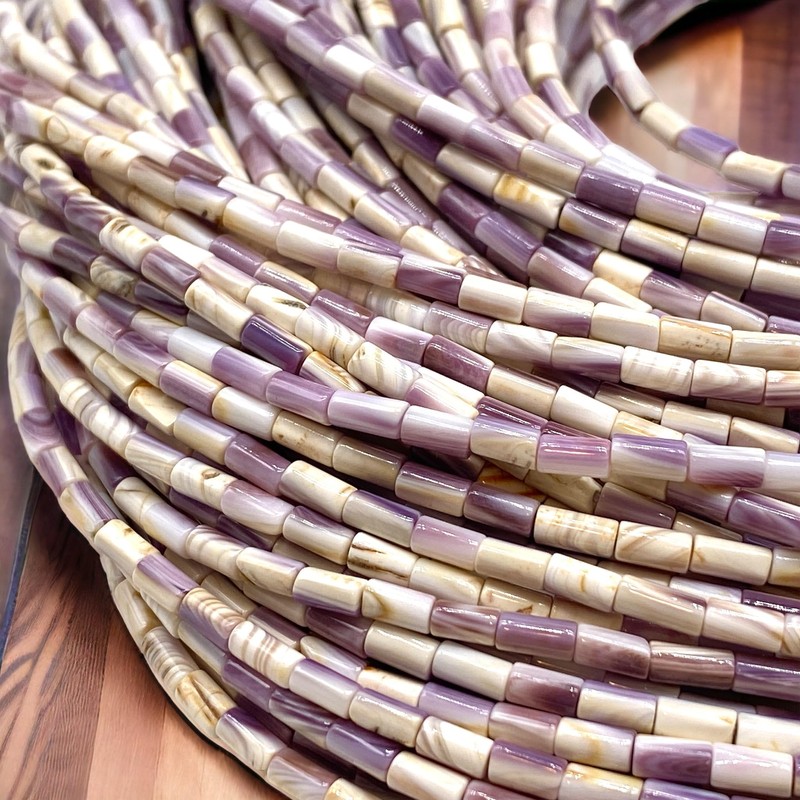 - [Sold in a 15.5 inches strand] Experience the rich history and natural beauty of Native American culture with our authentic wampum shell beads. Handcrafted from the shells of the quahog clam, these stunning beads feature a striking combination of lavender and white hues that create a distinctive and eye-catching look.