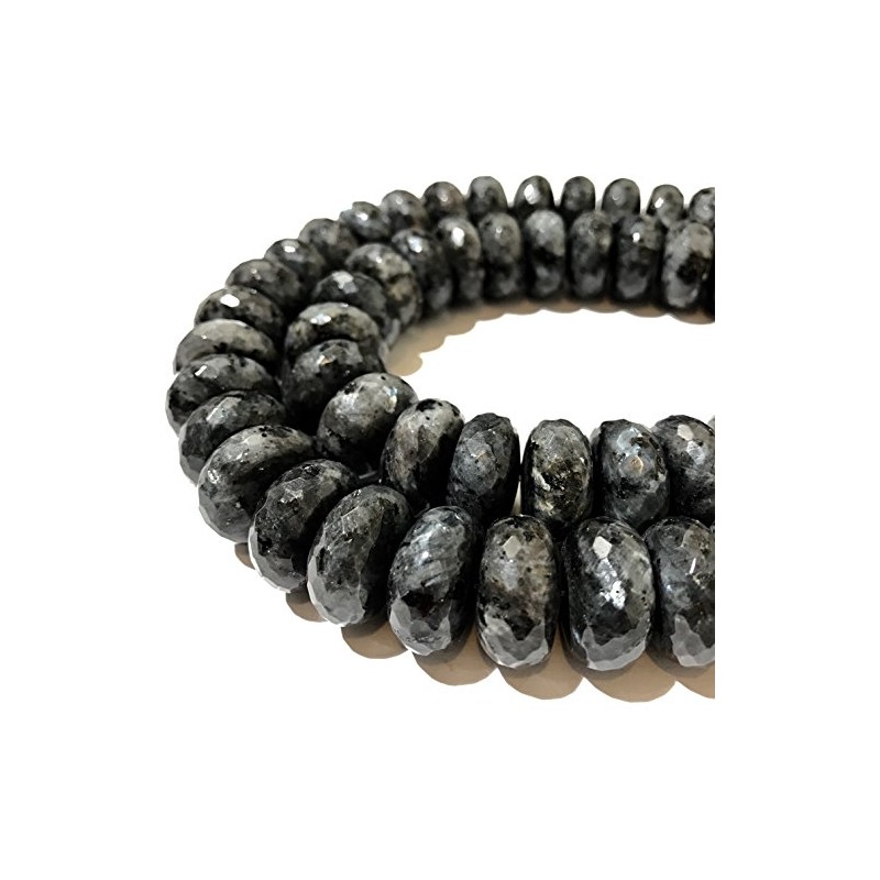 [ABCgems] Norwegian Larvikite AKA Black Labradorite (Pearly Gray Matrix- Beautiful Luster) 18mm Faceted Rondelle Beads for Beading & Jewelry Making