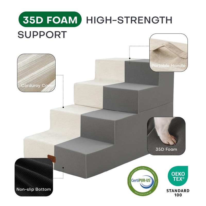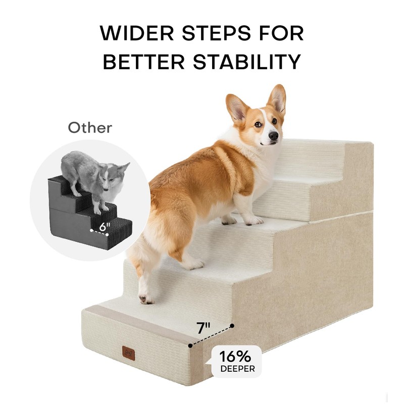 ABCPET Dog Stairs for High Bed, Dog Steps for Bed Couch Sofa, 35D Foam Extra Wide Pet Steps for Small Dogs and Cats, Pet Stairs with Non-Slip Bottom Beige, 5 Steps