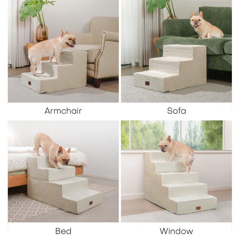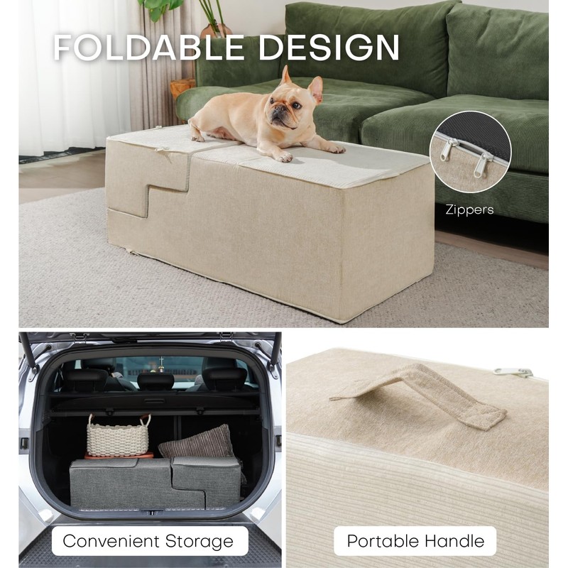 - 【Safe and Comfortable Design】: Crafted with soft corduroy fabric on the outer layer, our dog stairs enhance traction while providing a gentle touch for your pets. The non-slip bottom ensures stability, giving your dogs the confidence they need to navigate their new stairs safely
