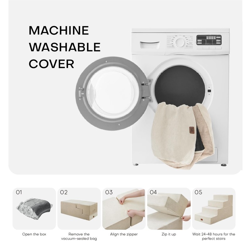 - 【Easy to Clean】: The dog stairs feature a removable, machine washable cover for effortless cleaning. Simply take out the foam core for washing; however, please avoid cleaning the foam and board. After removing from the compression bag, allow 24-48 hours for the foam to fully expand before use for optimal comfort