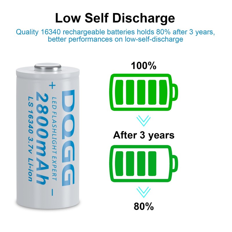 - 【High Performance】Long lasting 2800mAh 16340 battery is with large capacity which supports stable power for your devices and effectively prevent damage of the devices, such a ideal replacement battery for used devices with high frequency