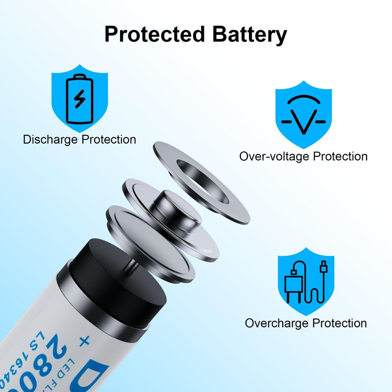 - 【Multi-Protection】16340 battery is without any memory effect and provide multiple protections,including short circuit, overcharge, and overcurrent protection. Make batteries more stable and safer to protect your devices