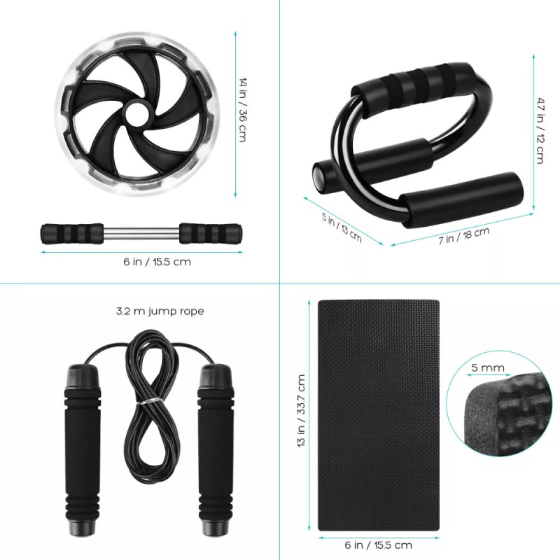 Abdominal Trainer Kit AB Wheel Roller with Push-Up Bars Jump Rope
