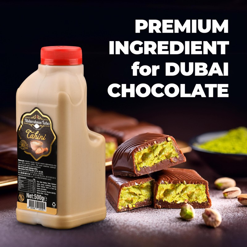 - Perfect Ingredient for Viral Dubai Chocolate Pistachio Treats: Create the trending Dubai chocolate pistachio delights with ease! Abdurrahman Tatlıcı Tahini's rich, nutty flavor pairs perfectly with creamy chocolate and crunchy pistachios, helping you craft this indulgent, viral dessert that’s taking social media by storm