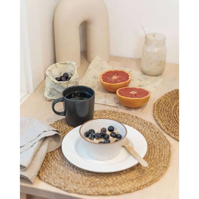 - Materials: cotton blend fabric infused with beeswax, tree resin, and organic jojoba oil.