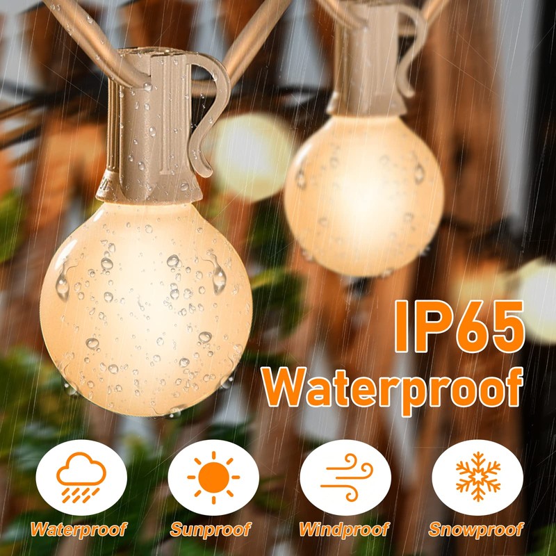 - Energy Saving LED Bulbs: Led outdoor lights string come with 27 frosted white led lights bulbs. G40 Frosted white globe led bulbs made of plastic, much shatterproof than traditional glass bulbs. Each frosted led bulbs 0.6W, low working temperature, no heat, safe to touch, saving 90% energy efficient.
