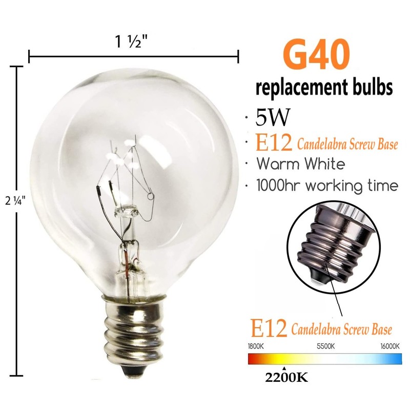 - VINTAGE EDISON BULBS: G40 string light bulbs have a candelabra screw base that fits C7 and E12 sockets.