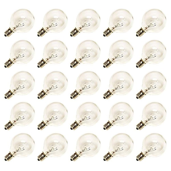 Pack of 25 Light Bulbs Warm Replacement Glass Bulbs for G40 Strands UL Listed for Indoor and Outdoor Commercial Uses.