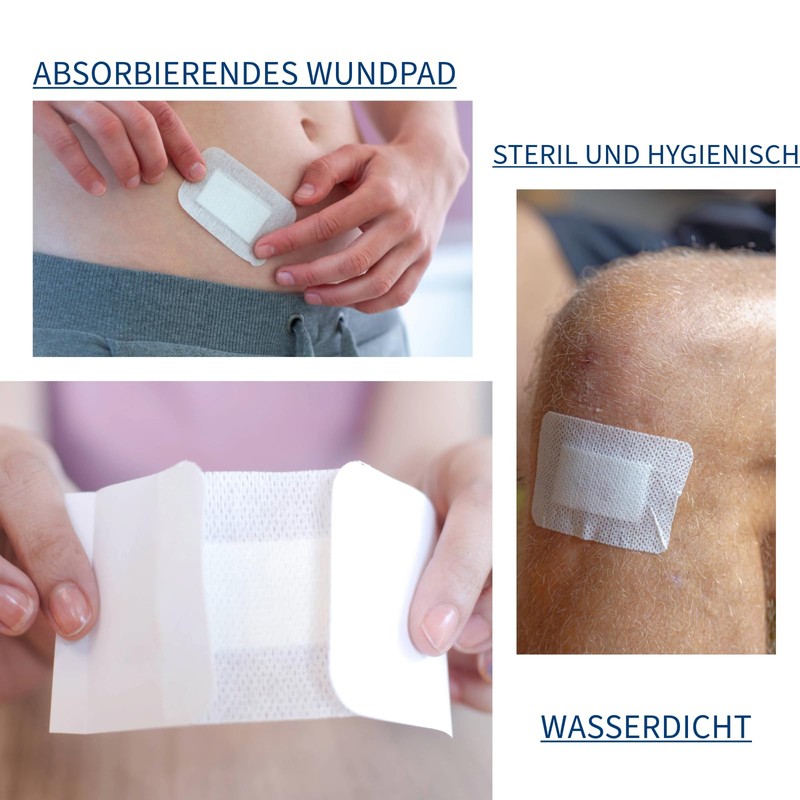 - Absorbent wound pad - Soft polyester pad that does not stick to the wound and allows painless removal.