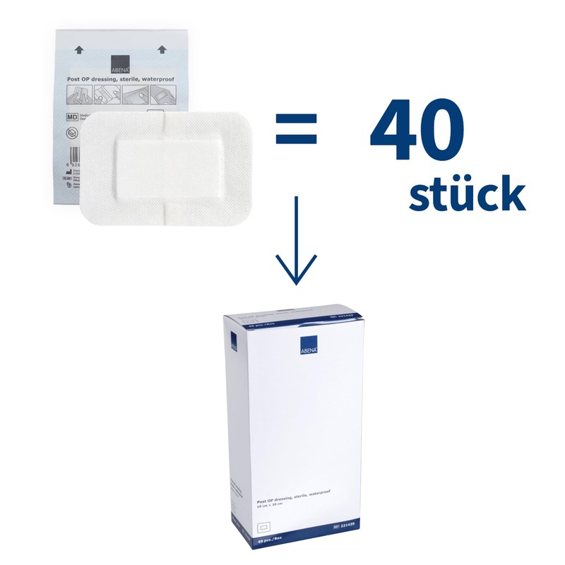 ABENA Pack of 40 Sterile Waterproof Wound Dressings, 10 x 20 cm, Sterile Plasters, 4-Ply Individually Packed, Absorbent, Breathable and Skin-Friendly