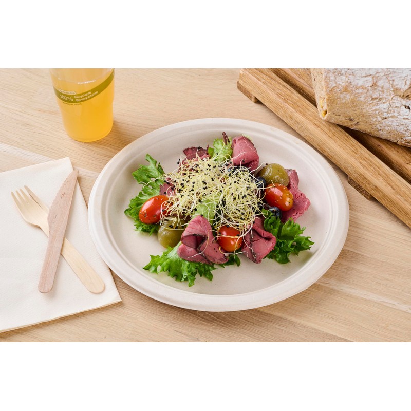 ABENA Sugar Cane Plates | ø23cm | White | Pack of 50 | Sugar Cane | Strong Disposable Plates for Parties | Strong Paper Plates | Sturdy Paper Party Plates | Large Paper Plates