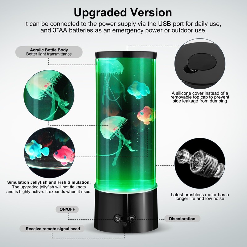 - 【Two Way Use】USB powered,comes with 1.5m usb cable, or required by 3 AAA batteries(not included). convenient for use in various scenarios. So it can go cordless if you wish. Ideal size(29cm tall), fits nicely on most desks or shelves. great as a desk night light. With no routine maintenance to worry about, all that’s left to do is turn it on to enjoy the colorful underwater dance.