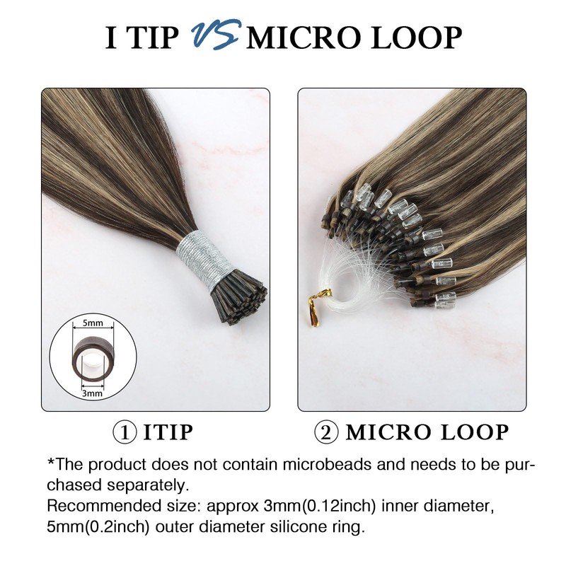 - About micro beads: We recommend the use of silicone embedded micro-beads. Silicone beads are non-slip, firmer and more comfortable and do not damage the hair. Please reinforce the beads every few weeks with pliers to extend the service life.
