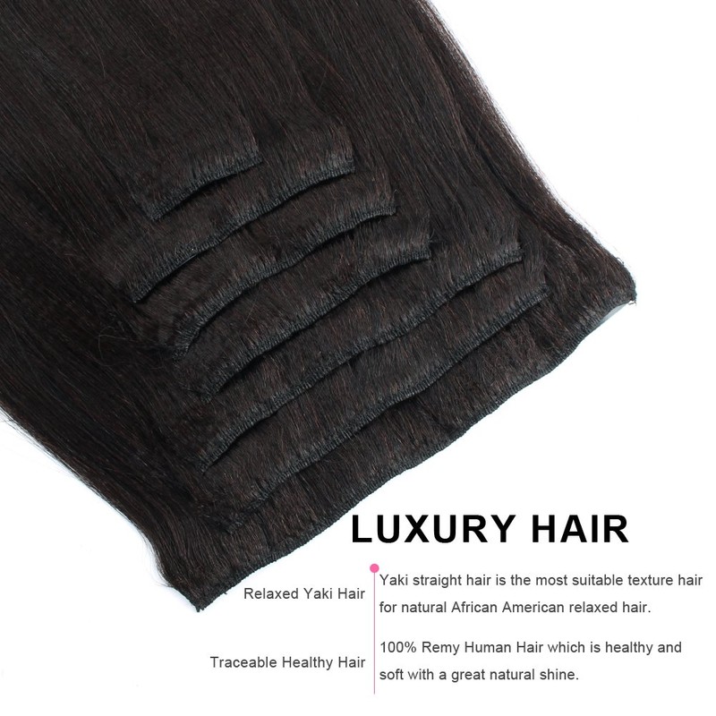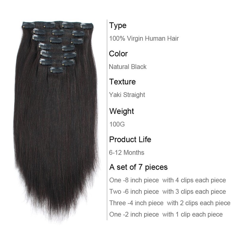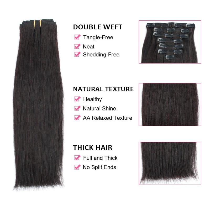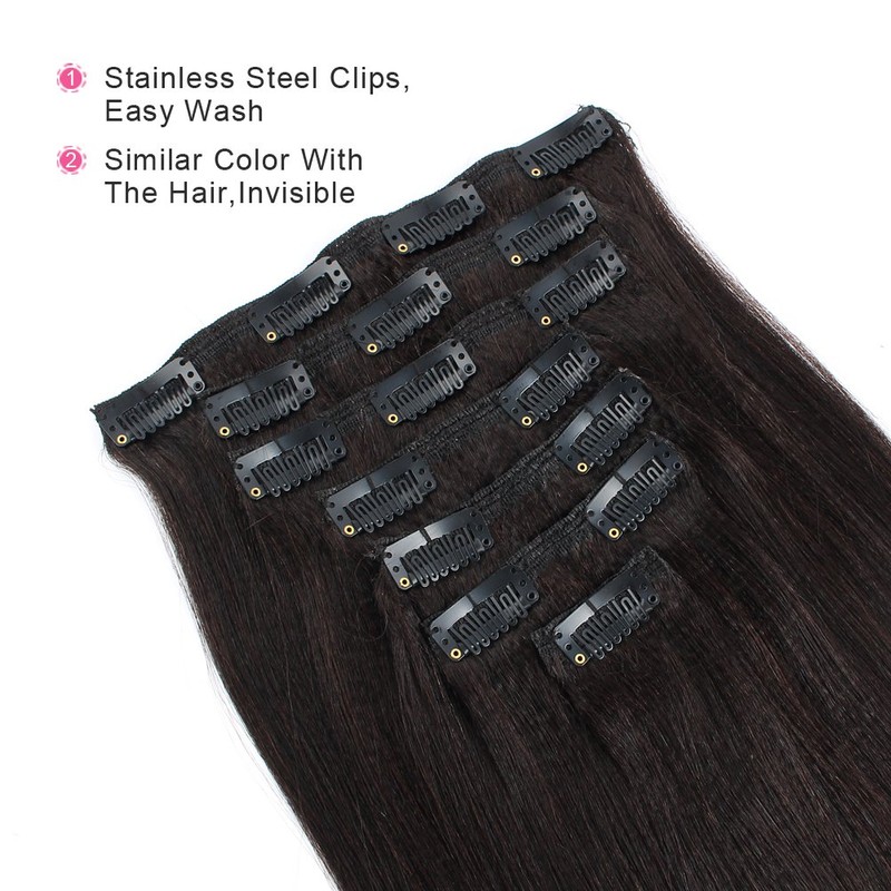 ABH AmazingBeauty Hair Real Remy Thick Yaki Straight Clip Ins Black Hair Extensions for African American Relaxed Hair 7 Pieces 120 Gram Per Set, 14 Inch