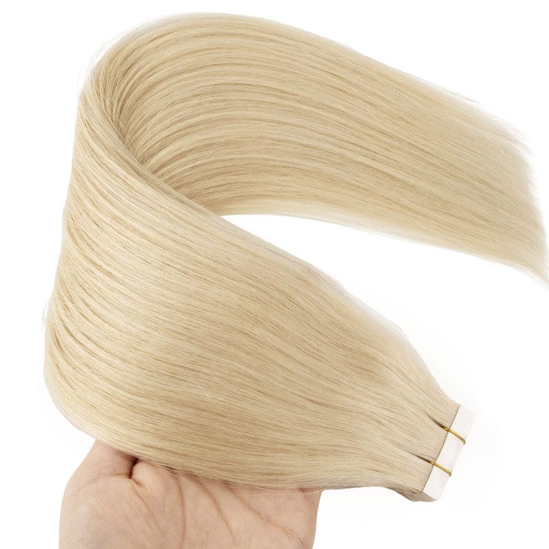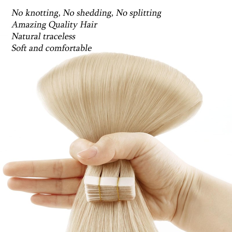 ABH AMAZINGBEAUTY Semi-permanent Real Remi-Remy 100 Human Hair Tape in Extensions 50g-20pcs Glue in Skin Weft Tape Attached Invisible Seamless Reusable Beach Blonde-Bleach Blonde Color 613 14 Inch