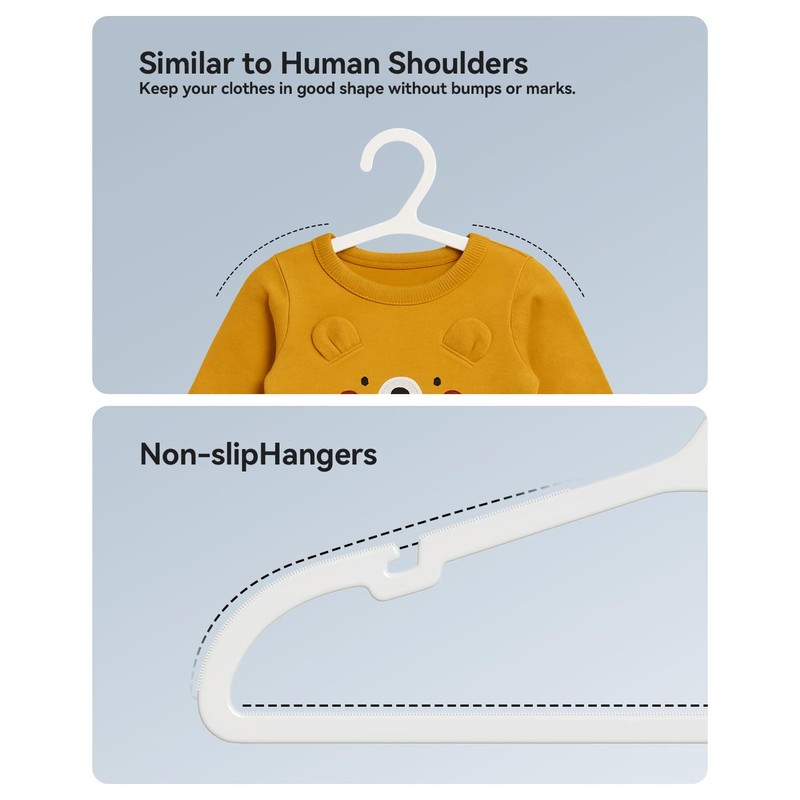 - CLOTHES STAY PUT, EVEN ON CRAZY MORNINGS:Those non-slip shoulder ridges? Total game-changer. They keep shirts from sliding off when your kid is rushing to grab a jacket before the bus, and the wide notches hold onto strappy dresses or their favorite tank tops without stretching the straps. No more “Mom, where’s my shirt?!” because it’s still right where you hung it.