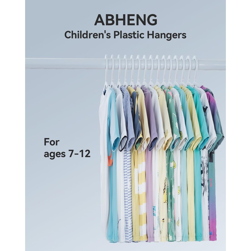 ABHENG Plastic Kids Hangers, Pack of 100, Ultra Slim Closet Hangers, Non-Slip, Space-Saving, Sturdy, 14" W x 7" H (for Children Aged 7-12 Years), White, UAPY07100W