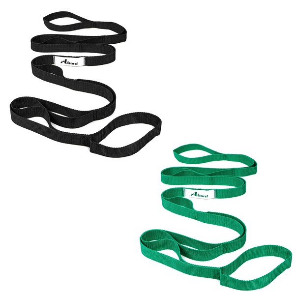 Abiarst Stretching Strap Yoga Strap for Physical Therapy, 10 Loops Yoga Straps for Stretching, Non-Elastic Stretch Strap for Pilates, Flexibility, Exercise, Stretch Band for Women & Men (2-Pack (Black+Green))