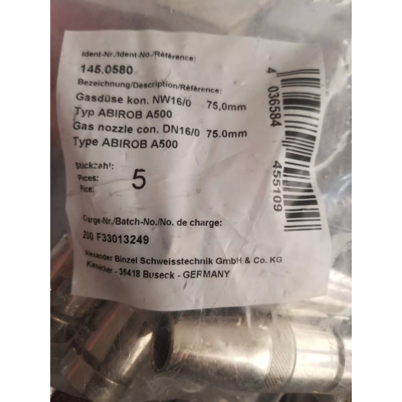 5 new Abicor Binzel 145.0580 Nozzles. New in package. See pictures. Thank you