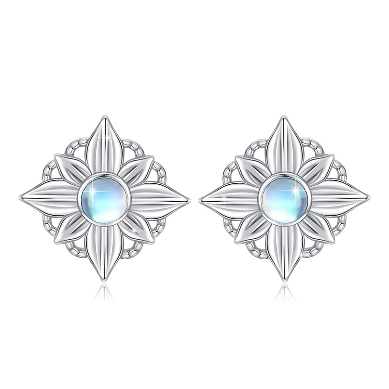 ABIGY Moonstone Stud Earrings 925 Sterling Silver Pointer Moonstone Stud Earrings Flower Moonstone Jewellery Stud Earrings for Women