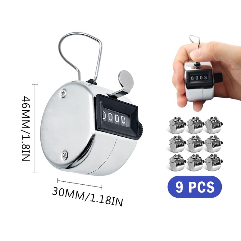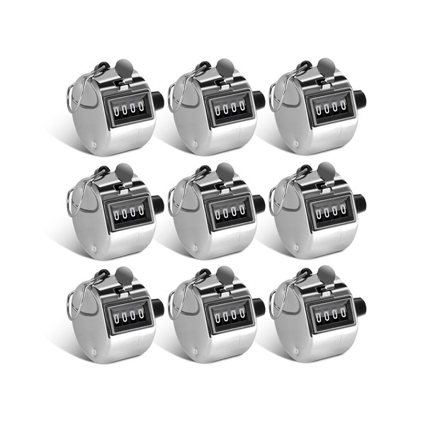 Abiyou 9 x hand counter, metal counter, clicker counter, hand tally counter, mechanical counter, hand click counter, clicker counter, for coaching, golf, school, stadium, knitting, fishing (silver)