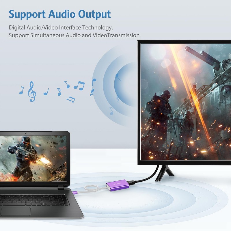 ABLEWE USB to HDMI Adapter, 2023 Upgraded Aluminum USB 3.0/2.0 to HDMI Audio Video Converter for PC Laptop Projector HDTV, Support Mac OS, Windows 10/8.1/8/7, Chrome OS, Not Support Linux. (Purple)