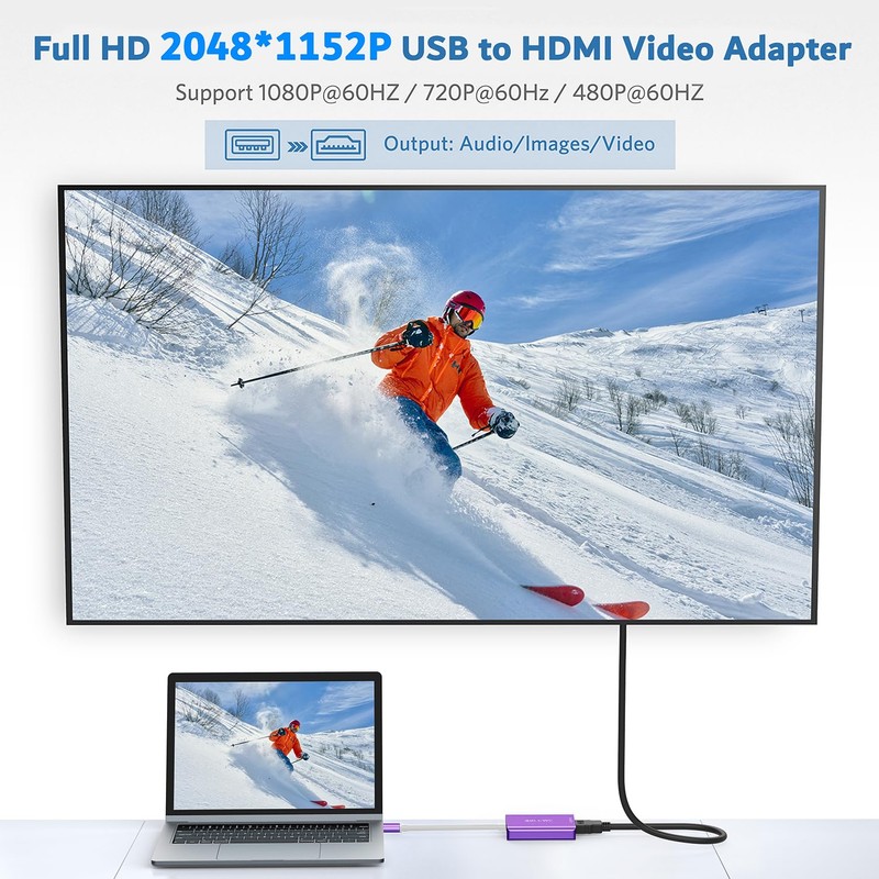 - 【Upgraded USB to HDMI Adapter】This upgraded USB HDMI adapter can connect a computer via USB interface to an HDTV, monitor, or projector with an HDMI interface. We have upgraded both the chip and the shell(aluminum exterior) with premium quality to be more compatible and durable to use.