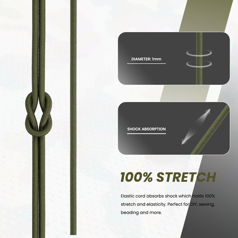 Abma Cord Elastic Cord 1mm x 10m Bungee Cord Elastic Rope Elastic String Thread for Craft, Jewellery, Party Hats, Sewing, Backpack, Tent Poles, Camping - Army Green