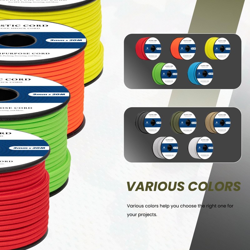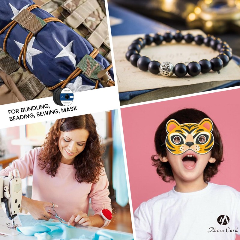 • MULTI-PURPOSE: It is widely used in various fields due to its excellent elasticity and adaptability, such as DIY, crafts, jewellry, bracelets, beading, necklaces, masks, party hats, sewing, garment making, hairbands, tent poles, backpacks, shoelaces, bundling, bookbinding and so on. Choosing the appropriate diameter of the elastic rope based on specific needs can better achieve the desired effect.