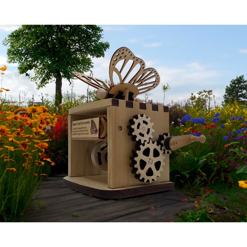 - READY FOR THE GARDEN - Crafted from laser cut cabinet grade plywood and carefully selected hardwood, this kit assembles into a mesmerizing animated monarch butterfly. A simple turn of the crank brings the piece to life.