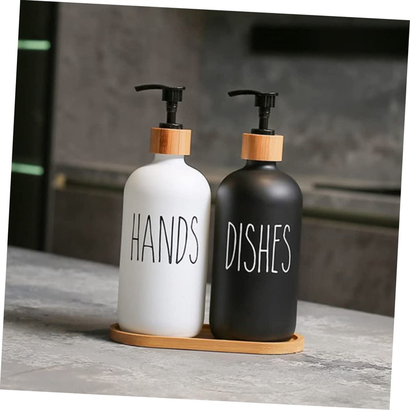 - Lotion dispenser--made of matte frosted glass, the shampoo and conditioner bottles will not leave fingerprints, feels comfortable and is ,shampoo and conditioner dispenser