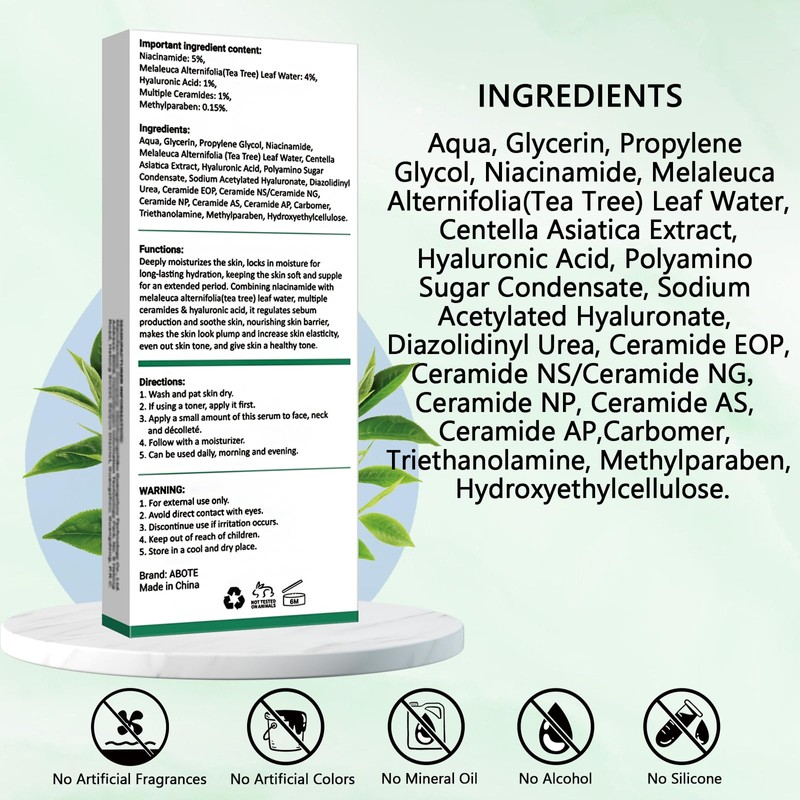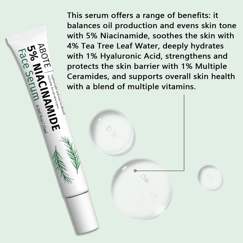 ABOTE 5% Niacinamide Serum with 4% Tea Tree Extracts | 1% Ceramide Complex | Deep Hydration | Regulates Sebum | Soothes Skin (3 Pack 0.507 fl.oz | 15ml)