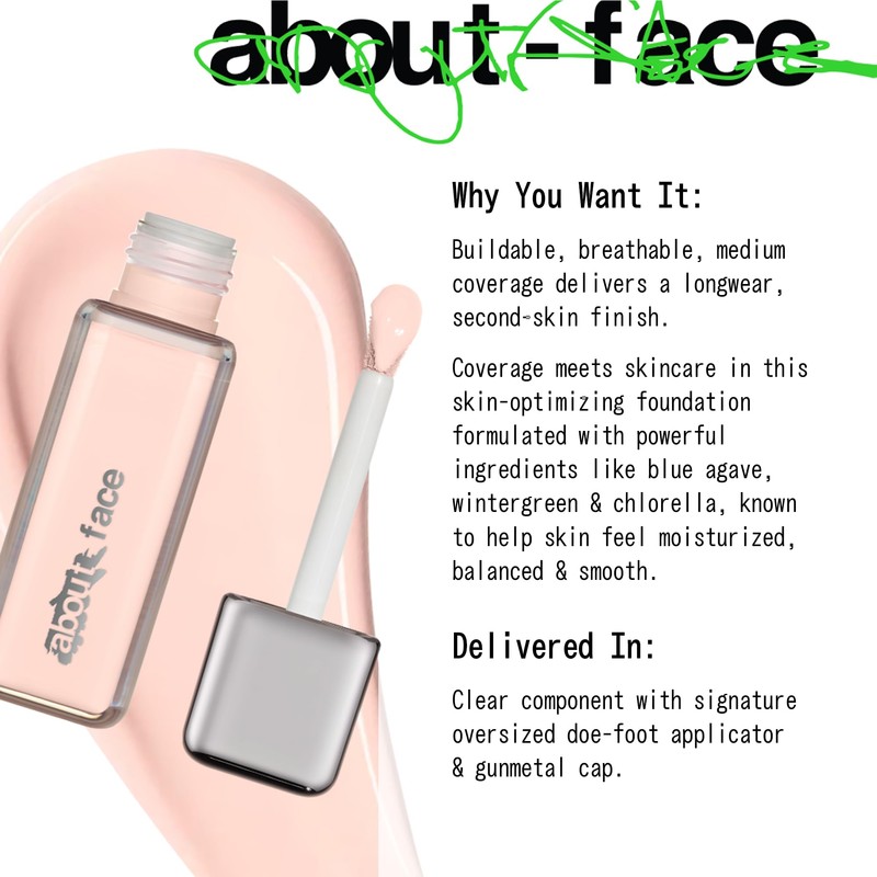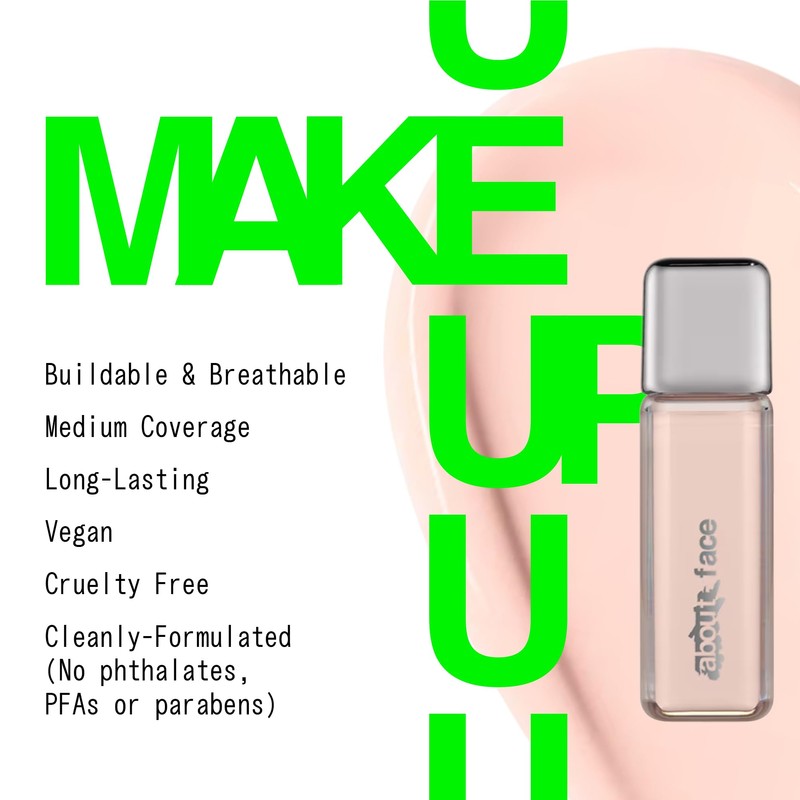 about-face THE PERFORMER Skin-Focused Foundation F2Cool – Medium Coverage, Long-Wear, Breathable & Buildable Base – Clean, Vegan, Hydrating Formula with Blue Agave & Chlorella – 1.08oz