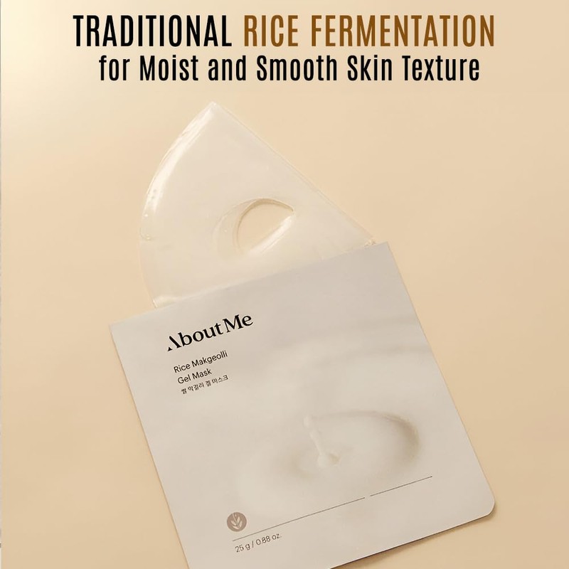 About Me About Me Rice Makgeolli Gel Mask - Hydrating Face Mask with Fermented Rice Wine for Smooth, Bright Skin, Vegan (5 Sheets)