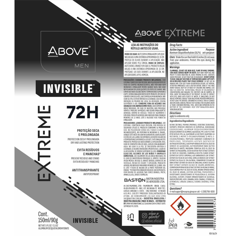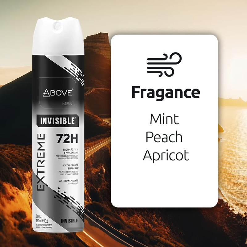 ABOVE Mens Deodorant Antiperspirant, 72 Hours (Extreme Men Invisible) -Protects Against Sweat & Body Odor - Dry, No Stain & Moisturizing Instant Freshness - Deodorant Spray, Alcohol Free - 3.17 oz
