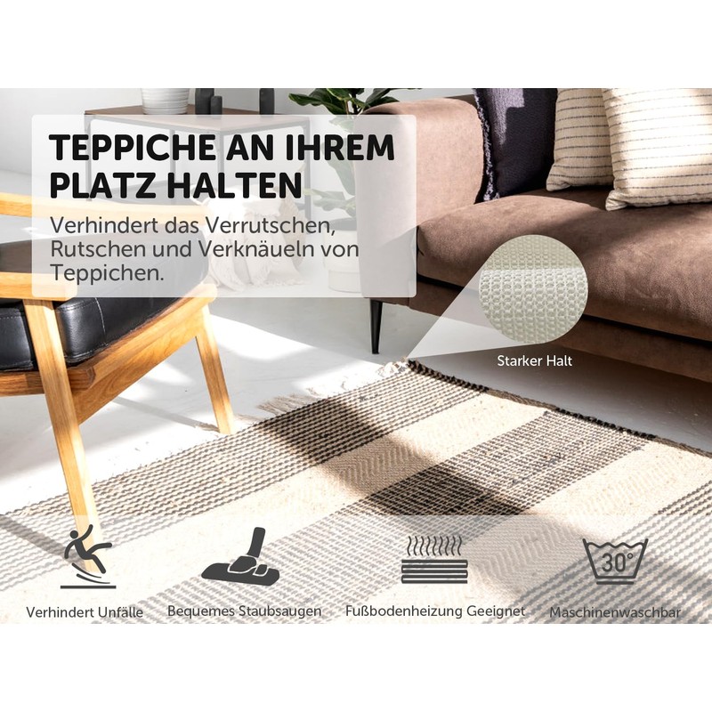 The non-slip carpet mat is perfect for high traffic areas such as living rooms and hallways as it holds the carpet firmly in place and prevents unexpected slipping. In addition, it can also be used under mattresses, under tablecloths, on gym mats or even as a non-slip mat in cupboards, providing all-round protection.