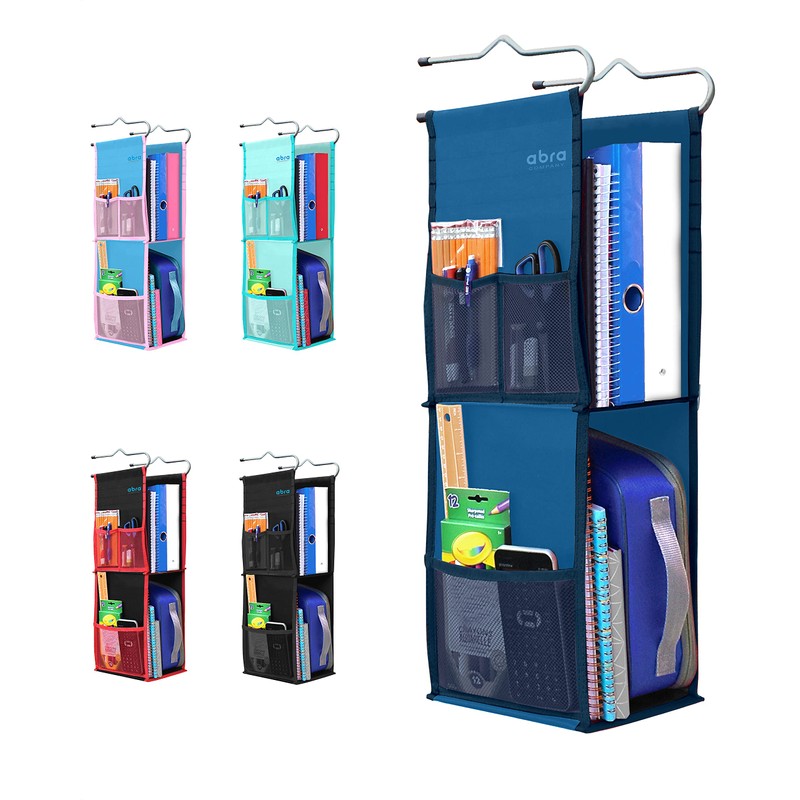 ABRA® 2 Shelf Hanging Locker Organizer for School, Work, Gym, Storage | Deep Shelves 6.5”x 9”| Eco-Friendly Fabric Healthy for Children (Navy Blue)