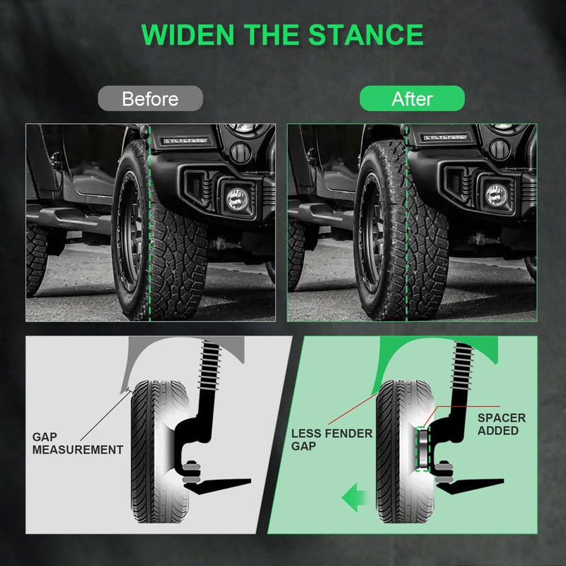 Increases your vehicle's track-width