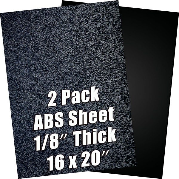 ABS Plastic Sheet 1/8 Inch Thick 16" x 20" (2-Pack),Black Rigid Moldable Panel with Different Surfaces (Textured Front & Smooth Back) 0.125" Thick for Structural Parts and DIY Home Decor, etc.