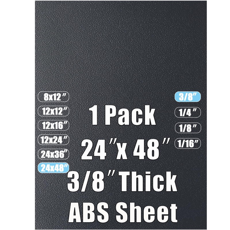 - Package Content --- The package includes 1 piece high grade black ABS plastic sheets 48x24 inches and 3/8 inch thick. Explore the unlimited potential of thermoplastic sheets, craft your projects with superior materials board, unleash your creativity, and anticipate your extraordinary creations!