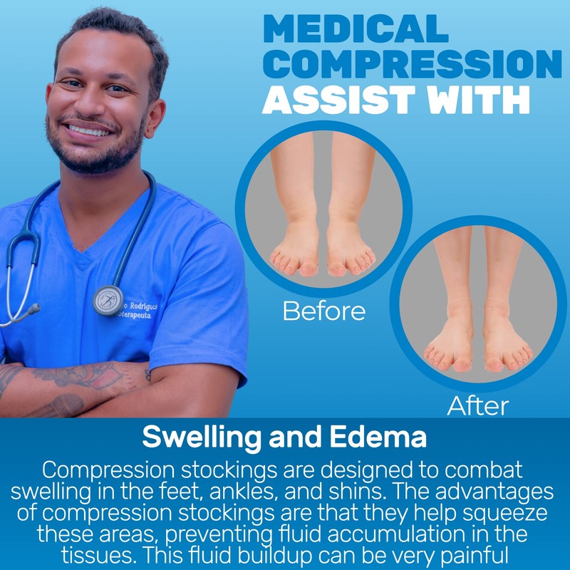 - TARGET EDEMA - These thigh-high compression socks are specifically tailored to help reduce symptoms of edema, providing firm support to the legs to improve circulation and reduce fluid buildup.