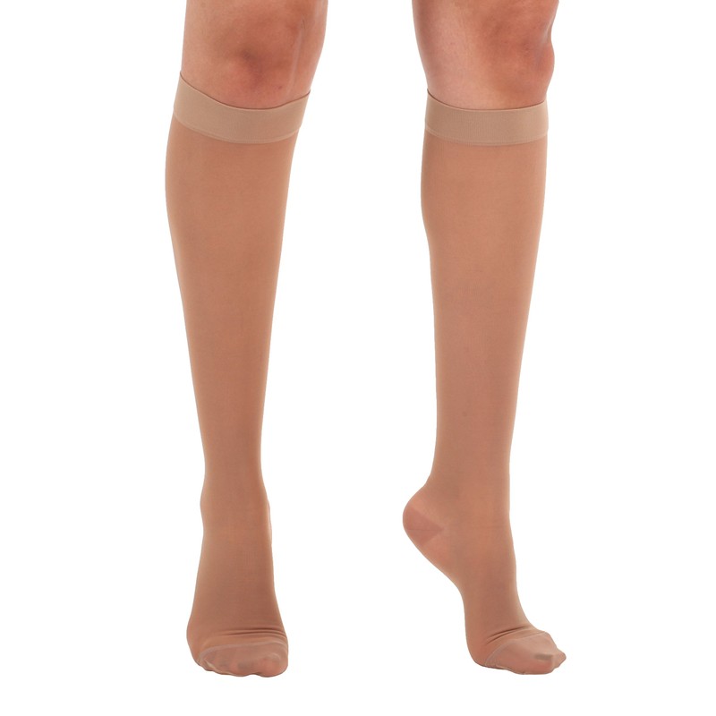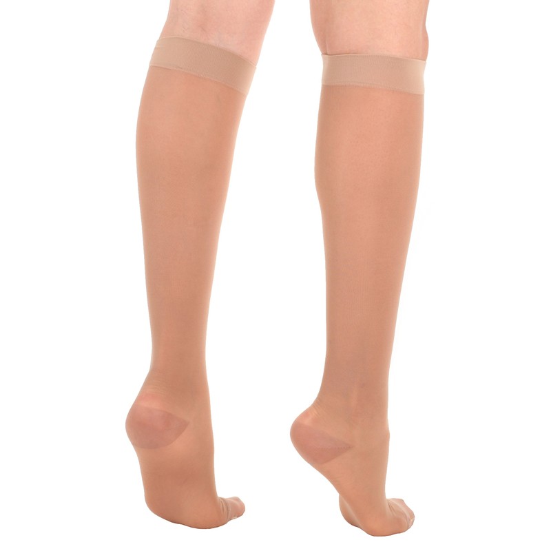 Absolute Support Sheer Knee High Firm 20-30mmHg Compression Women's Sheer Knee High Firm Compression 20-30mmHg.Our Sheer line is for the woman who desires extra support without sacrificing comfort and great looks. The Absolute Sheer line is so stylish it is hard to believe they are high compression stockings. Designed for chronic swelling of the ankle, moderate to severe levels of varicose veins and leg disorders. Comfortable top band to keep garment in place. Reinforced toe and heel. Great comfort. Semi-transparent spandex Lycra material. Fashionable sheer look and feel.80% Nylon, 20% DuPont Lycra Spandex